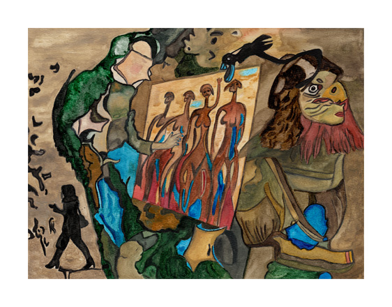 Maler mit Huhn